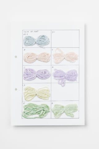 それぞれの白は、多彩な色を織り合わせることによって表現されます。一本一本の糸の色は、色同士の関係の中で変化し、浮かび上がり、消えてしまいます。白は色の集積としてあらわれてきます。